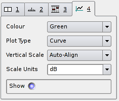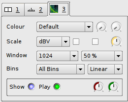 The type of values displayed, and the way the colour scale for the spectrogram is calculated can be adjusted using the Scale display properties:
