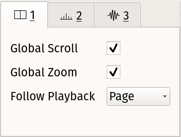 The Follow Playback control allows you to choose whether the pane will track playback using a playback cursor, paging when it reaches the edge of the pane (Page); or whether it will scroll along with the playback (Scroll); or neither.