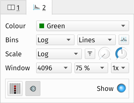 You can stack any number of panes above one another vertically: a scrollbar will appear if you have too many to fit in the window. The horizontal axis of each pane corresponds to time in audio sample frames, and all of the stacked panes will be aligned to the same sample frame at their centre points.